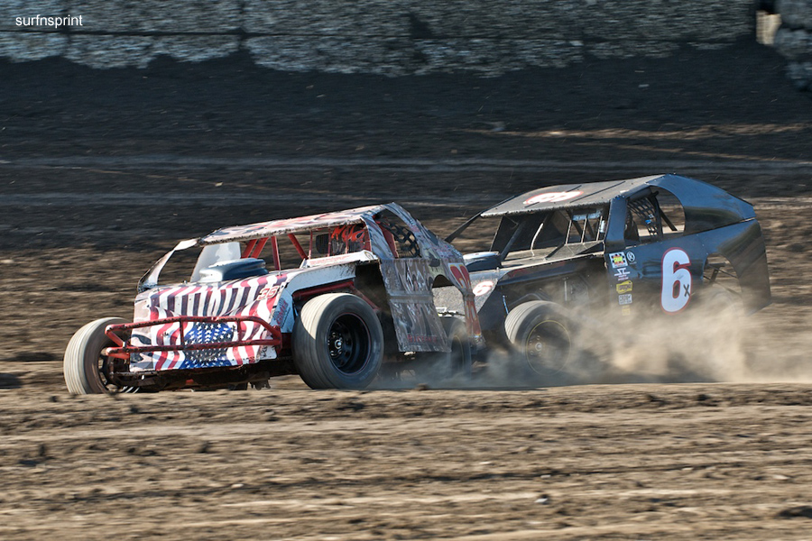 Mods rocked the house as usual. Modified drivers Aaron Rodarte, Rob Green and Damon Redman dominated. John Crow, Joe Haresky and Randy Thornell were huge at the end. Jack Parker was in the hunt but broke down in the backstretch. But it was finally Larry Hood who power drifted into town and grabbed the win fair and square. Paul Vetter was in the house and called it loud and proud.