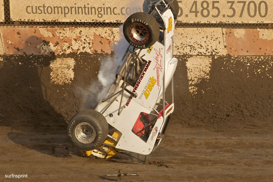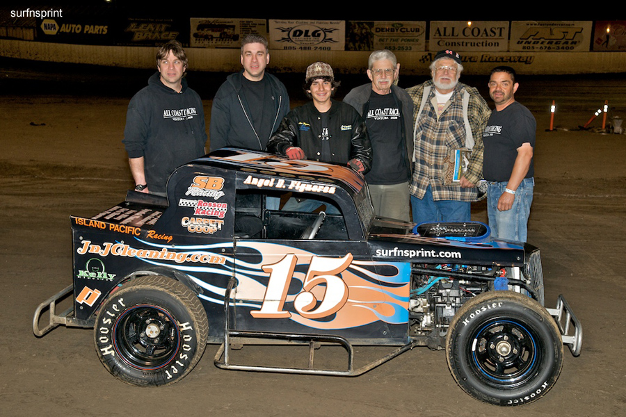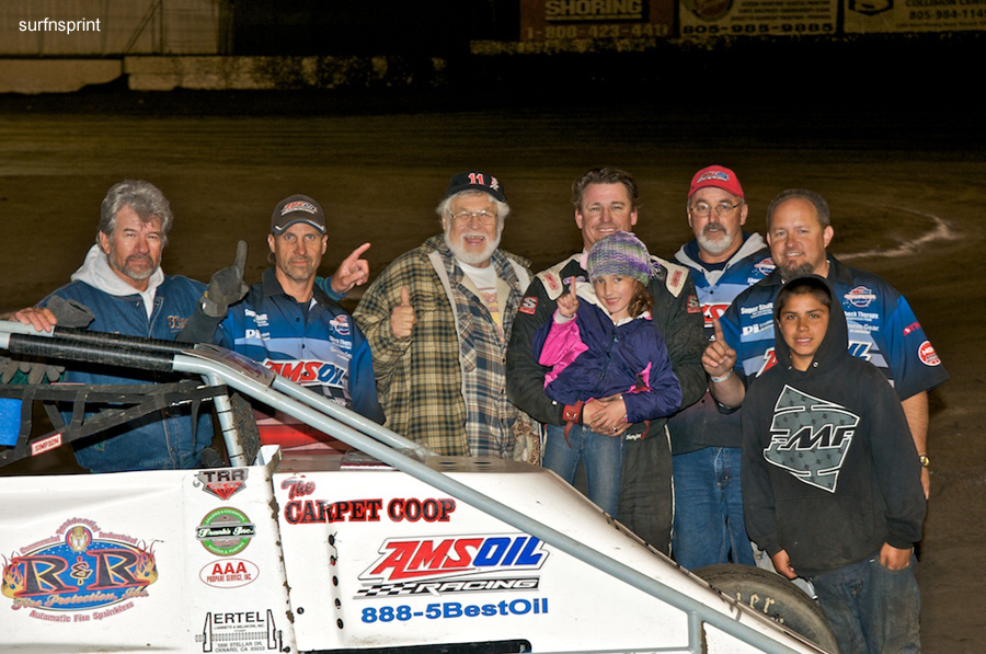 Another first class Sprint Car Main Event with Troy Rutherford breaking the seven-race streak of different winners. I’d have to say he cruised to his second consecutive win. The real story is Brent Camarillo’s exciting second place driving. Nobody has to wonder when Brent or Brian are going to arrive, they have paid their dues and either one can win on any given day. As a fan, I am flat out inspired every Saturday night by the fearless throttle down driving of Ventura’s finest. Brent and Brian Camarillo, Guy Woodward, Ronnie Case, Greg Taylor, Kenny Perkins, Don Gansen: the list is as long as the roster. Add Hobie Conway to that list. Grueling barrel roll crash in heat four, she climbed out and sprinted across the infield to the pits. Climbed into her track official suit and ran safety crew the rest of the night. Is this racer badass? Send money. Rutherford first, Brent second, Steve Conrad third, Rick Hendrix fourth and Kevin Kierce top five.