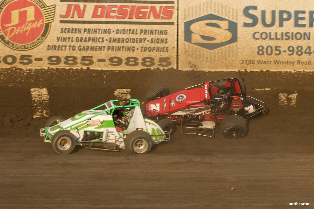 Sprint car action raged like wildfires all across California last Saturday. Sixteen cars in Santa Maria for the Southwest Contractors 360 Clash with T.J. Smith taking his third win in four weeks. Southwest Contractors does so much for so many in this sport I can’t keep up. High five to them, Chris Kearns and T.J. Smith. Twenty-five cars in Perris with the USAC-CRA Champion Mike Spencer returning to form the week before the prestigious Louis Vermeil Classic in Calistoga. I remember Mike came back from Calistoga last year and went on a tear. They found something in that wine country and were beating everybody over the head with it all the way up to the Nationals. I hate to miss Perris and thanks to Tanner Watson who did such a great job with my ad in the Perris program last race. She gave it a lot of thought and effort and landed me on the inside cover. Typical of the attention to detail Perris puts into everything. In Ventura, the hard-core faithful again showed up, twenty-two senior sprint cars and twenty-seven regular VRA for a total of forty-nine sprint cars. Dave Mahar and I were giggling at the deal; nine heat races, two semis and two mains. For the fourteen-dollar fan admission, that works out to about a dollar and a dime per race. Throw in kids for free and they are practically paying you to come to the races. Best of all, those were smoking heats, brutal semis and amazing mains. Another thing, to think that Senior Sprints are anything less than the regular VRA doesn’t hold much water anymore. More about that later. But first, let me plug Tom “Thunderhead” Toutz’s Ventura golf tournament in two weeks. The USAC-CRA 410 monsters are returning to Ventura September 25th along with the Wagsdash. The Committee To Support Ventura Raceway (when it’s under attack) along with Ventura Raceway and Wagsdash are throwing a golfing event to raise funds. My understanding is that half the money raised will go to Ken for his Wagsdash and the other half will get stashed for future battles to protect the raceway. Anyhow, if you think you can drive a golf ball farther than Troy Rutherford (and apparently Don Gansen thinks he can) come on out to Buenaventura Golf Club on Friday, September 24 and put up. All the VRA legends will be there for golfing, eating, drinking and comparing pistons. Get details at thunderheadonline.com. Dinner will be served. Thanks to Tom Toutz, Jimmy Crawford and Ken Wags for all you do. Also don’t forget the Jack Kindoll Hall of Fame Classic September 18th at Perris. Chris Holt has been working his butt off to raise prize money to keep alive the memory of this pioneer. Chris has also been helping me with my photography and I’m hanging on every word. “Back up” he tells me. “Show the cars together, let them tell the story”. Good advice.