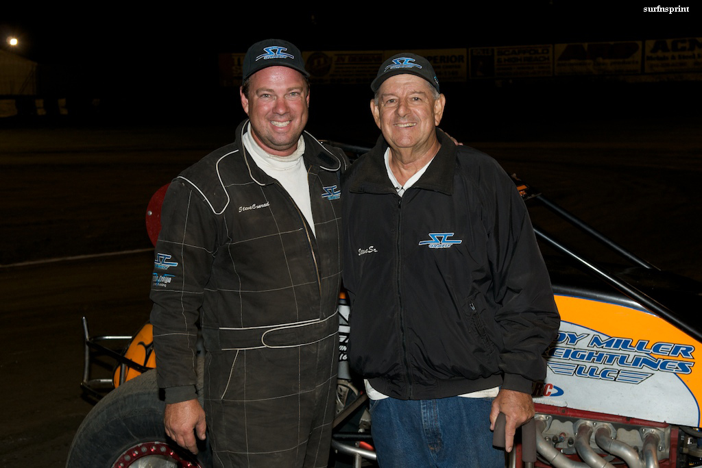 I’m fascinated by the deep and complex father and son relationships I see in racing. My own father was a bum, so I am especially intrigued when I see Dads hovering over their children in those mini dwarfs, karts and sprints. I borrowed some pictures of a young Steve Conrad from his father, Steve Sr. and I was examining them carefully. They showed Steve Jr. when he a young racer with long hair and even then he had that Steve McQueen smile. I realized it was his dad taking these pictures and driving him to the races, a thousand road trips where you come in second and who else is going take that long drive home with you, explain what happened and what’s really important. I don’t think a kid could turn out finer than Steve Conrad. As the years spin on, the cycle of children, racing, grandchildren, love won and races lost plays out. Steve wanted the win bad tonight he tells me. As time goes on, sharing those wins seems more and more precious. Out in Great Lakes, Illinois, north of Chicago, Steve Conrad’s number one fan, Reed Broschort, has completed naval boot camp. His dad Ron texted him the race results. I know Reed and he is out there bragging to anyone who will listen about Ventura and Steve Conrad. Bragging about the track, the father and the son.