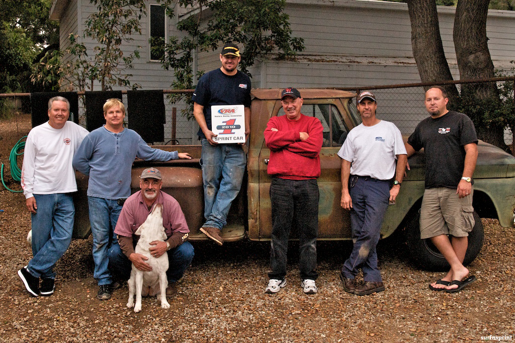 Congratulations to 2010 VRA Sprint Car Champion Troy Rutherford who rose out of hills of Ojai and dominated the best little dirt track in America. I went to the mountain and paid respect at the pinnacle of speed. Troy pointed to the oil stained concrete slab in the race shop and swore the Championship was won right there! He had his crew with him all the way and they were getting ready for this Saturday. A championship is memories from a million moments. It’s about determination, deprivation and motivation. Troy told me the hardest part is the dedication to the car and the strain on the wife. Leslie tells me she just wants him happy. She’s got that down because he is just about the happiest go lucky dude I ever saw. Daughter Logan is fast with the Mini Dwarfs and he was fussing all over her car while his sprint sat untended. He’ll get it all done by Saturday and that racing family will be in the thick of whatever mess is going on.