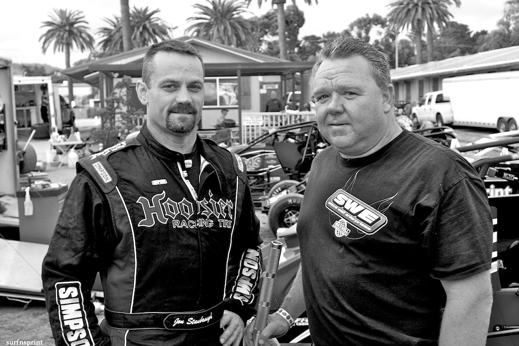 The facts are almost mundane but the nuances are fascinating. Forty cars signed in, a bit less than we were hoping for but we’ll take it! Out of the ordinary were Jon Stanbrough, Dave Darland, Ryan Bernal and Nic Faas. It was also a pleasure to see Kevin Mahoney, Dennis Rodriquez, Ed Schwarz and Tyler Edwards. Jesse Mack is becoming a regular, fantastic to have him on board. The rest were the usual sterling standout VRA regulars. Let me get the Stanbrough/ Darland story out of the way. Biggie has been trying to win this contest since the beginning. He ran Hockett the first year, courtesy of a Jackslash introduction. That was the infamous race where Brandon Thompson snuck past the wall-banging Hockett by sticking to the bottom. Second year Hockett was at the Trophy Cup, where he crashed both of cars on Friday night. Biggie said “hop in the car, I put you in a ride tomorrow night at Ventura 5k to win”. They came down; Hockett was dominating when Sheridan flipped hard. Leaders Hockett and Mitchell both stopped on the track and were put to the back. The yelling that went down in that tower is still reverberating around that track. God Bless Jesse Hockett, he put this race on the map. Anyhow, Jackslash now puts Biggie and Stanbrough together and they start talking. Jon wanted a ticket to fly out. Biggie comes to me and I say “Sure, I got a ticket for him.” Next thing I know Sean, Biggie and Tommy Horne are talking to Dave Darland. Biggie comes to me and says what about Darland? Well, now I have to sit down and catch my breath. Dave Darland is my biggest sprint car hero and the thought is kinda breathtaking. “Where is he gonna stay?” I ask. “We’ll find a couch for him” say’s Biggie. Well, that didn’t seem right. This guy is a Champion and he shouldn’t be on a couch. “Well”, I instantly decide, “tell him to come and tell him he’s got a room at the beach for two nights. Tell Stanbrough he’s got the same deal.” I called my secretary and asked if I had enough Amex points to fly two guys out from Indiana for a couple of days and put them up. Sure, she says, no problem. So ok, I’m good. Next Shaun Kautz (with a cast on his foot) approaches me after a race and says he’s trying to get Darland to drive his car. Do I want to help with a ticket? Well yeah, but I think he’s already booked. I suggest he checks with Biggie and Tommy and sorta forget about it. Later I call my buddy Chris Wakim and ask him about Kautz, I don’t really know him. “Great guy” reports Wakim. How’s his car? I ask. “Top notch equipment” responded Chris. Well, he looking for a driver. Chris then tells me Kautz was a little pickled he didn’t get Darland in that car. He told Chris he was determined to find somebody to beat them all. Little did I know, Kautz was also talking to Sean Buckley. Buckley says to him “why don’t you put Nic Faas in that car?”