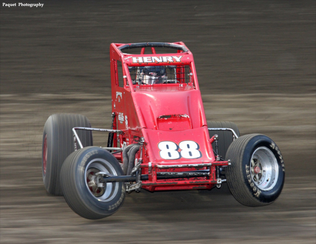 Semi 1: Troy Rutherford took the pole and got in the clear. Josh Ford was right behind him. (Josh was talking to Naylor at the race and commenting that he had 17 top ten finishes, several top five, two main event wins and he still finished second in points behind Rutherford. “Rutherford is having a Hall of Fame year” he ranted, “ why isn’t anyone talking about that!”) Dave Darland was running third but couldn’t get the car moving. He tried a slide job and it failed miserably. Donnie Gansen was on the gas from the second row and moved into third. Some drivers mash down so hard on the pedal, it can take your breath away. That was Gansen this race, Alexander and Derek Buckley in the second semi. We’ll also talk about Tom Hendricks in a moment. Meanwhile, it’s Rutherford, Ford, Gansen and the tenacious Rick Hendrix crossing the checkered. Darland is giving it his all but can’t quite make up the distance. Anybody that knows anything is a bit stunned. I think back to hot laps when he rolled out on the track in a car with a big “surfnsprint “ logo on the side. I walked over to the trackside and yelled at the flagman, “Shoot me now, I want to die happy.”