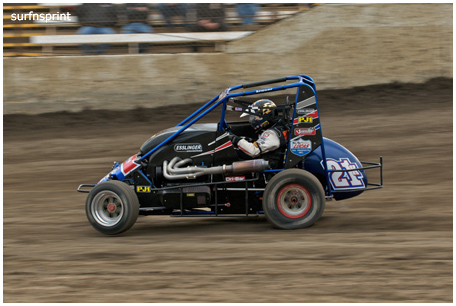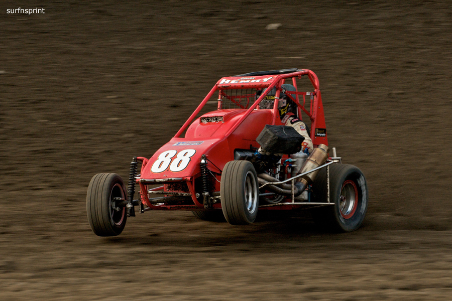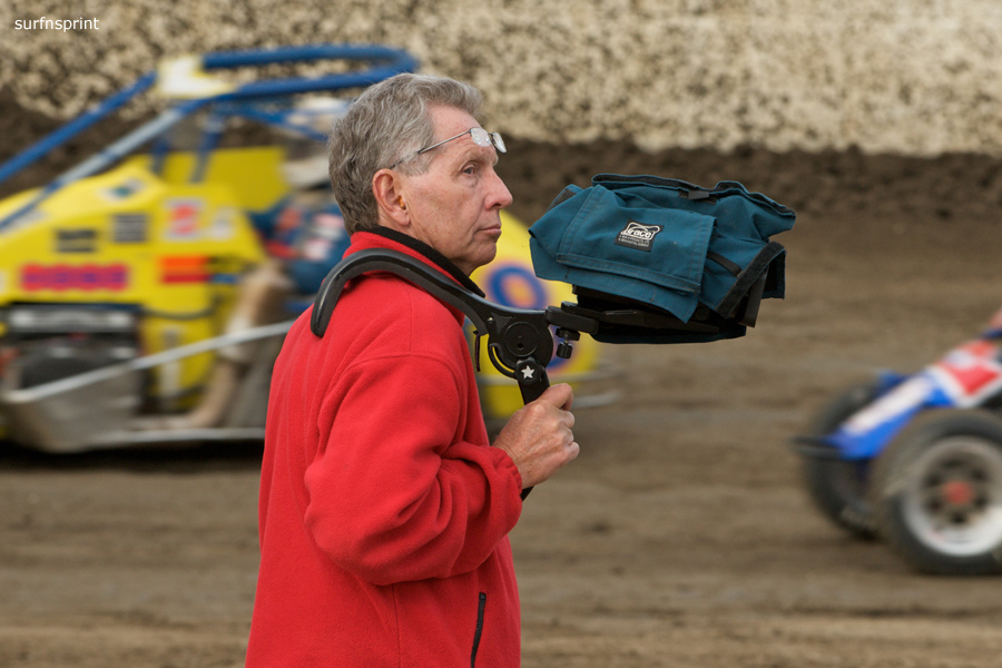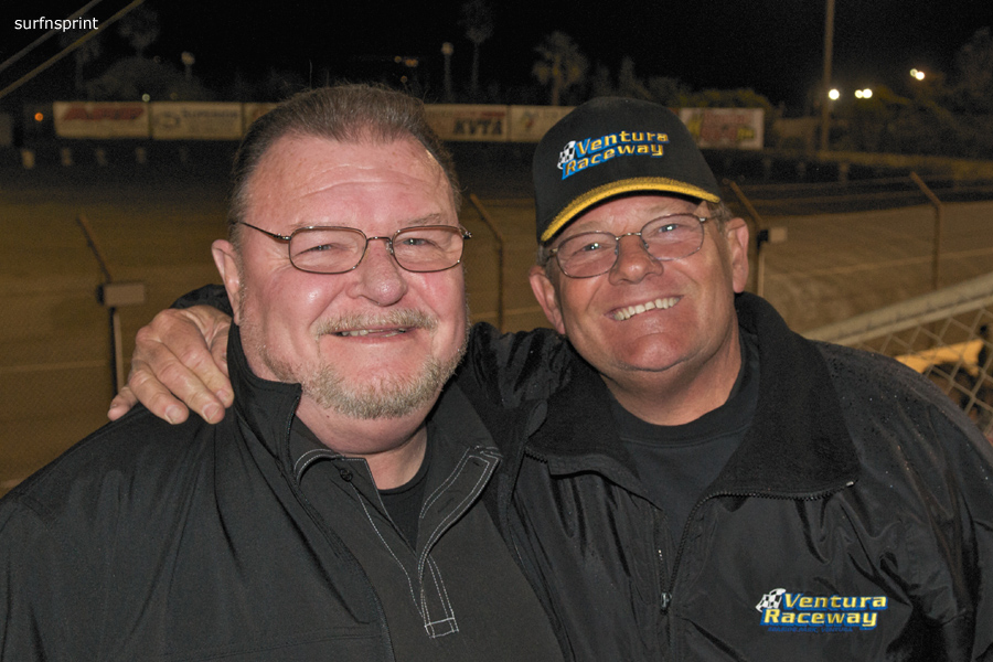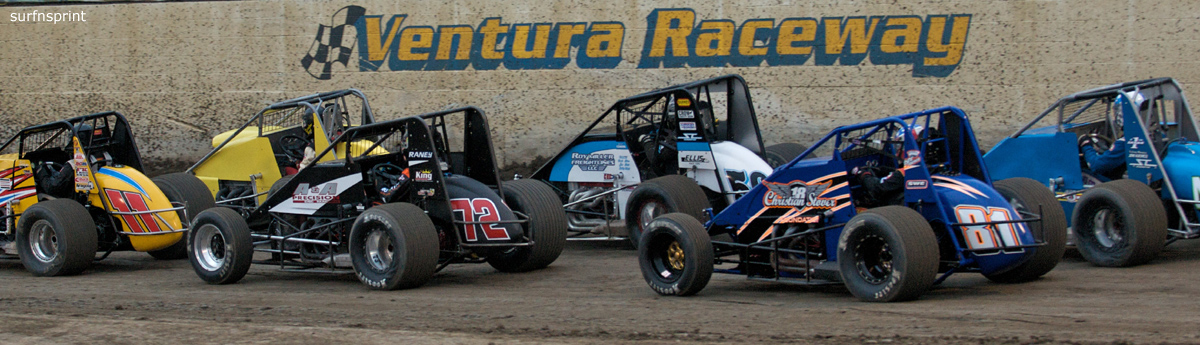 Midget main was excellent. Naylor was thrilled that the track’s size and the hard tire got the cars “off the pole” and racing all over the track. Lot’s of passing. Kruseman started third, went back to seventh or so and then fought back to the front. Jake Swanson’s Honda power plant stacked up nicely against Cory’s Esslinger with a second place finish. Props to Chris Ennis for a third place showing, Ennis is proving to be a formidable competitor. Jonathan “Hammering” Henry was amazing. Between this Midget race and the Sprint that followed, I would have to say that Jonathan Henry dominated overall and just killed in both events. Check him out in the red Graunstadt #88 just exploding down the backstretch on the Loudpedal Video. Cody Swanson was hard charger from seventeenth to seven. The whole Kruseman and Naylor BFF thing is paying dividends for left coast racing. Bruce Douglas (the real surfnsprint) along with Victor Davis and evergreen Bill Camarillo have been at the center of a core group pushing for Midget racing to come back to Ventura. With Cory, Steve Watt and Rick Taylor helping Naylor with test, tech and direction, Ventura is again becoming a church for speed. With the school, the shack and the championship experience, is Saint Cory is stacking the deck for himself? Maybe. But when you are baptized at Ascot, confirmed in Perris and ordained at the Chili Bowl, you don’t have a lot of ‘splaining to do. Puts his racing suit on one leg at a time and has to fight from the back just like everybody else. Bless these punks. Jim, Cory, Steve and many more are in the middle of life long commitments. They are bleeding on the cutting edge of open wheel racing. They’re taking us with them. Midgets are back at Ventura. Twelve races and I won’t miss one!