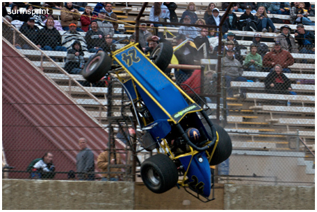Had an early breakfast with John Henry, his son and a gaggle of friends. I don’t think you can find more forthright people. I dropped off Brudder Brett and dragged my sorry ass home in the early morning hours. I think I stood in that tank-less hot water stream forever, thinking about it all. The funny part is, I wasn’t really thinking about this race. I was thinking about the USAC West Coast Sprints. I really need to blast up the coast and see those guys! I want to meet TJ Smith; that guy goes off. So many incredible drivers in that group; my buddy Faria, Murphy, Pombo, Carlile, Alexander, Hamblin and those crazy spelling VanderWeerds. And how about Wes Guiterrez? Please bring back that Gothic paint job that was trashed at Tulare last year! This isn’t a sport, it’s a sickness. How can you reel exhausted in the shower at 2:00 am and all you are thinking about is the next race. Now it’s Thursday. Ventura is cancelled and Victorville is hopeful. That track is sick fast and the big dogs are rolling in. For God’s sake go out and support this new promoter and 410 racing. It’s going to be a party. The last time I was there David Cardey burned the place down. There seems to be a new optimism replacing last year’s depression session. Some great racers are missing in action; some people aren’t getting the rides they deserve. But the people I know aren’t going to tiptoe through the graveyard. Crank up the music. They are going to rave on the grave.