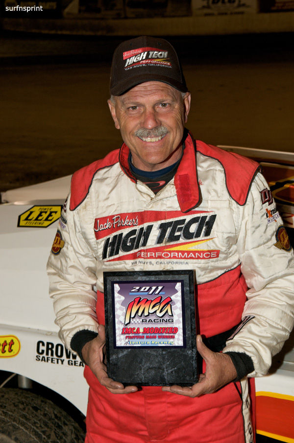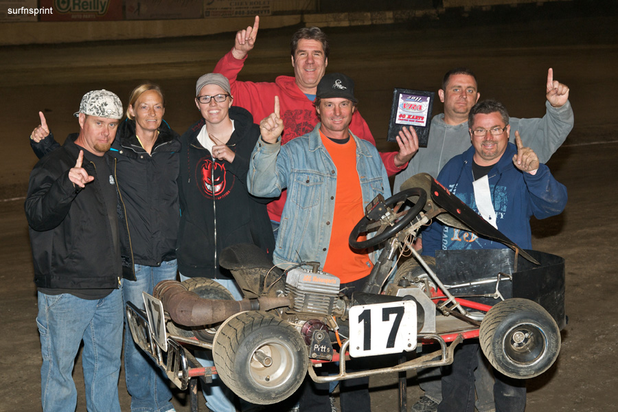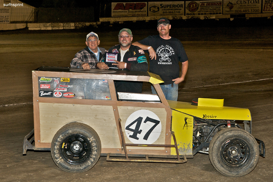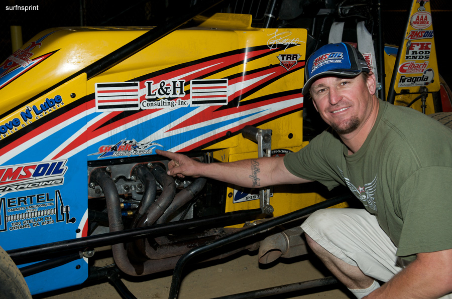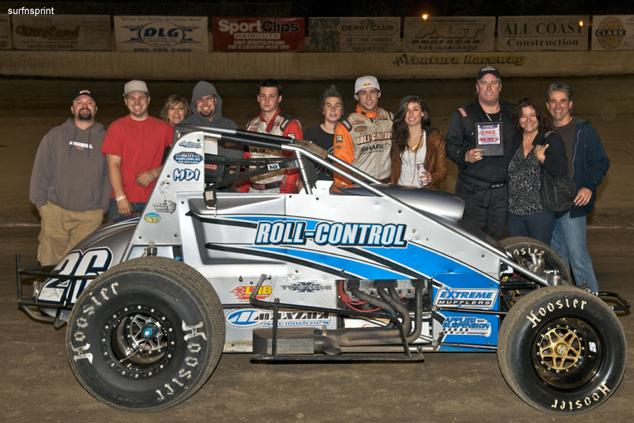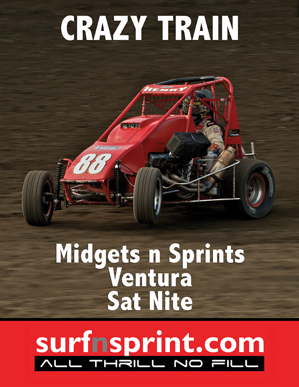 Troy Rutherford again stomped the competition and we’ve got a problem. Can anyone beat Troy Rutherford at Ventura? With victory in four out of five races, Troy is having what Mike Spencer calls a ‘defining year”. It means the track is having a “Jimmie Johnson” year, a condition in which there is no drama, you pretty much know who is going to win before you park your car. That’s bad for a promoter, fans want a close race with surprises and twists and turns in the championship hunt. Troy tells me he’s racing for the money and he needs the money for racing. He takes a win and takes the money to his engine builder, parts house and buys more fuel. Steve “Cool Hand” Conrad led the first twelve laps until the bottom strategy imploded and he finished second. Ironically, the Senior Sprint main was won on the bottom and the Sprint main was won on the top. Third place Jonathan “Hammering” Henry gave a hell of a fight, bringing that “we try harder” ethic that us blue-collar race fans relate too. Henry almost caught Troy once, coming out of turn four and showed him a wheel I reckoned. Troy tells me no. “Never saw him, never knew he was there” he told me after the race. “What a minute”, I demanded, “you never knew that Henry was challenging you for the lead?” “Never”, he replied, “I had no idea who was behind me and where anybody might be. I run like I’m running from the cops. Even when I get to lapped cars, I’m passing them left and right, but I have no idea who they are and I don’t care.” I have to think about that a bit, I was sure he saw Jonathan coming and that was important motivation. But it was almost insignificant; at this point in time Troy is only racing himself. You need to go in the pits after a race and talk to Troy. He is relaxed, he is focused, and he is having fun. But he has got a fever that would scare a mother.