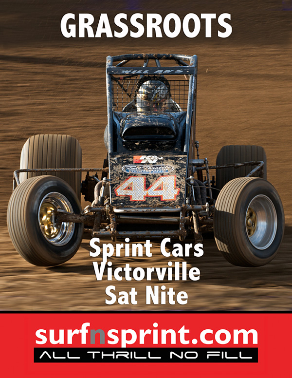 I don’t know much about Lightning Sprints, but I do know that point leader Kevin Michnowicz started in the back of his heat, passed five freaking cars before they got to turn two, ran into a cluster cluck at the end of the backstretch and that was the end of his car, his night and his point lead. Great things are coming for that multi generational racer. Dan Hilberg ran from the fourth row to second place and won the main event after first place Jarret Kramer failed tech. What I do know I am learning from reading press releases by Scott Daloisio Sports (909-226-7768). Scott has become the go to guy for the serious drivers, teams and associations wanting professional promotion and attitude. I also love the little historical and anecdotal bombs he drops on the boards every now and then.