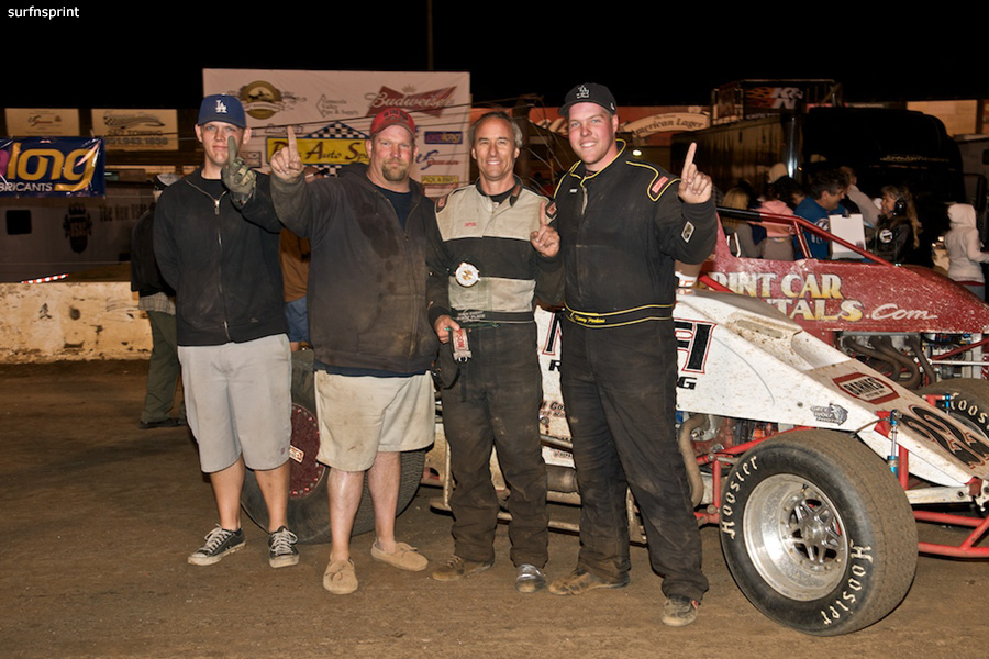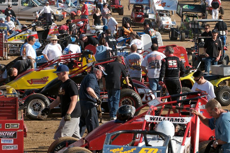 Obviously, the most intriguing development was the mid race collapse of deuteragonist Mike Spencer in the storied Ron Chaffin #50. Mike started from the fourth row and had worked his way to second. Spencer qualified fast time and that car had all its marbles early in the race. The up front fight between Mitchell, Spencer and David Cardey was why we all go to watch. Mike told me trouble developed with smoking and a sudden loss of oil pressure. He pulled off instantly to try to preserve the engine and when I saw that crew post race, they were still poking around without any definitive answers. Ironically, this may provide the impetus that Mike, director Bruce Bromme and Production Chief Ron Chaffin need to chase down an elusive fourth consecutive Oscar. Any notion they’re losing their grip is sure to stoke the competitive fire that drives all three. Bruce Bromme leaves Thursday to be inducted in the National Sprint Car Hall of Fame. Following that, that trio will compete in Indiana Speed Week, competing in rapid-fire consecutive races. By the time they get back to California a few weeks from now, they should have their racing chops honed to sharp edge. Storyline editors are working furiously on the sequel.