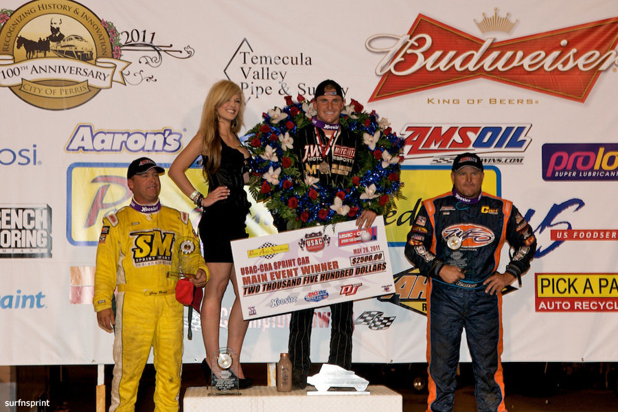 Bucking years of industry trending, Perris Auto Speedway delivered a blockbuster Memorial Day weekend, breaking car count and grandstand records across the board. Although too early to confirm that conditions are systemic and long lasting, the 410 summer opening at Perris combined with the healthy 360 car count a week earlier at Hanford bodes well for USAC West Coast efforts and delivered solid racing thrills to audiences two weeks running. Big shows are predicted for independent producers Victorville in early June and the VRA All Coast Challenge in Ventura scheduled for late June. Strong crowds at both of these events could signal the sea shift keen industry observers are looking for. Saturday’s breakout hit came about after producers tore up the predictable script, brought in new talent and turned the standard classic into a summer cliffhanger. Studio executives tossed the Mike Spencer happy ending and there was a rush of fast shoes to fill the marquee poster. Rising star Matt Mitchell, represented by the Nick Mitchell Agency and a host of talented wrenches, grabbed the lead role and delivered a knock out performance. Although Mitchell is now the considered frontrunner for Oscar Best Driver, there was a whole host of powerful supporting roles that gave this story depth, meaning and excitement….