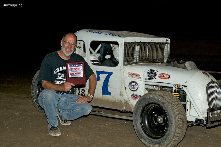 Ten seniors and thirteen pro in the VRA Dwarfs. I’m told that’s a diminished and short count, but it seems like it’s twenty-three dwarf cars to me and what’s bad about that? They actually separated the mains and ran the seniors first. Mike Neal had an exciting win with Rick Lapka second and Keith Vondersaar third. But the Pro Warf Main was magical, with an astonishing run by Lars Wolfe. Kevin Calvo had a brilliant race and led most of the laps, but Lars ran him down and made a dramatic pass on turn four of the last lap. I hadn’t seen a dwarf main in awhile and it reminded me how core these drivers are. The VRA Dwarfs are awesome and deserve the respect they seem to think they lack.