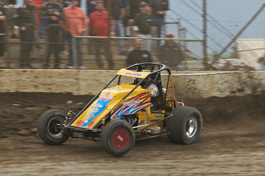 The Ventura County Star Sunday edition ran a Sports page one story about the hardship of racing at Ventura under this recession. The current issue of Sprint and Midget Magazine expounds on the hurtful situation across the nation as rain and recession have gutted the car counts. If you include the senior sprints, there were thirty-nine sprint cars racing at Ventura Saturday night. They tell me it should be more, but by my math I would be greedy to expect more. I am just stoked to be in the infield and watch these tough bastards push off and stomp on it. For me, it’s just a mystifying blend of grit, skill and tenacity.