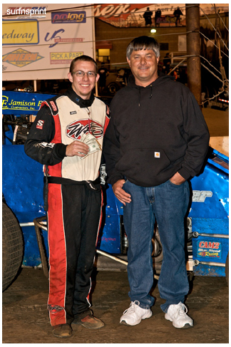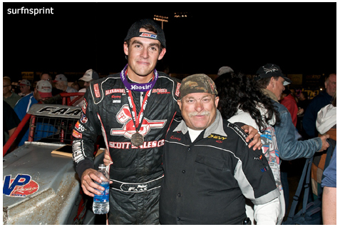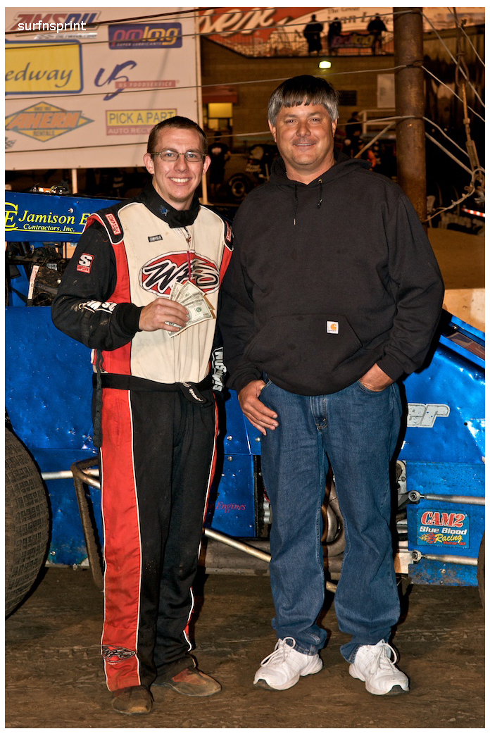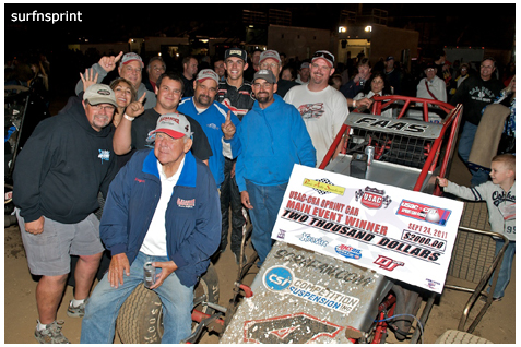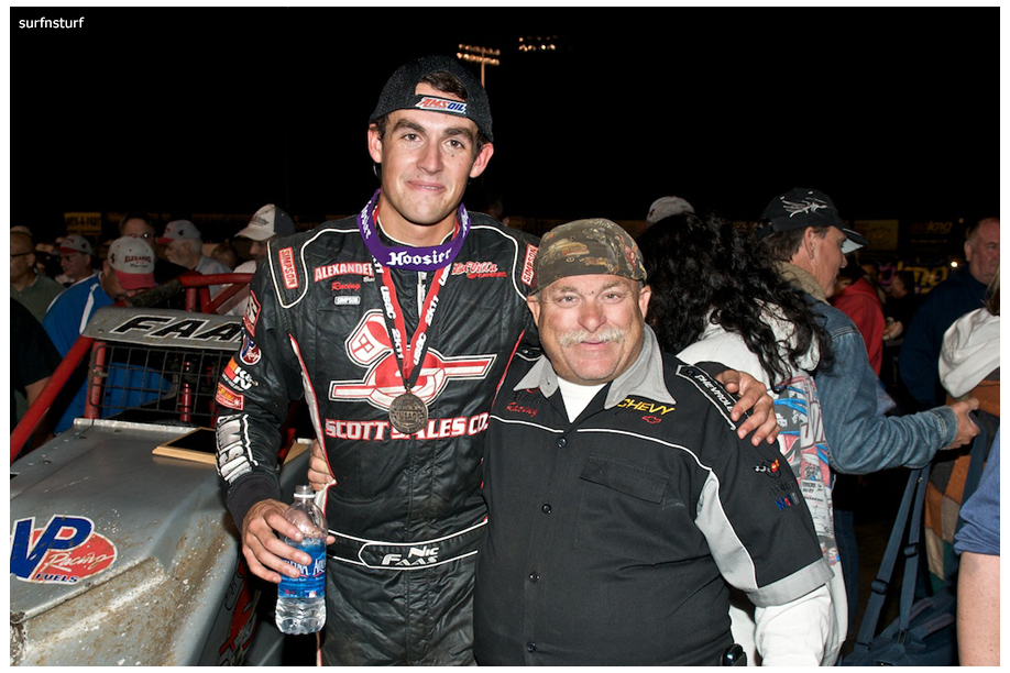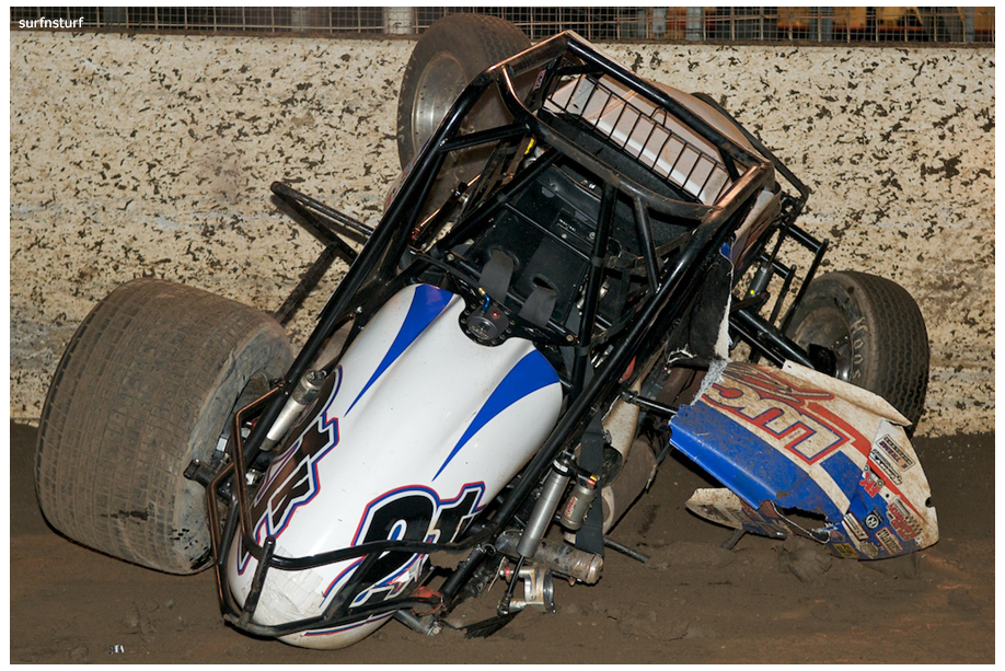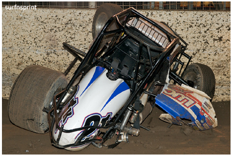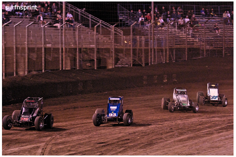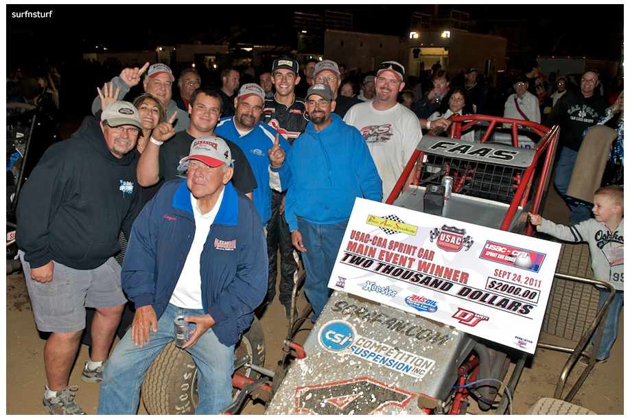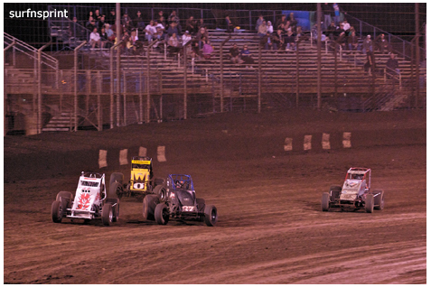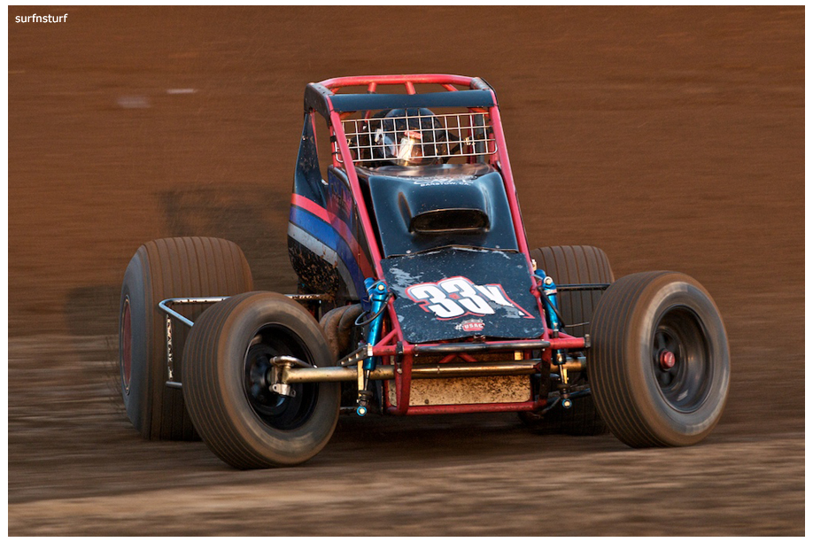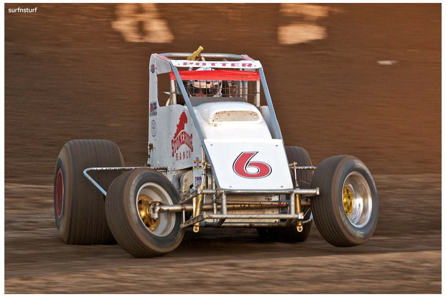 Perris Main Event: The high performance and low drama Greg Bragg on the pole. Gets a good run on the green but the tower calls them back for a restart. They throw the flag again and front row David Cardey matches Bragg down the front. Cardey gets under Bragg in turn three, Austin Williams gets under Cardey, Nic Faas clears Rip and Bragg regains the lead launching out of four. It’s Bragg, Austin Williams, Cardey and Faas. Rip is fifth with Danny Sheridan, Rickie Gaunt and Mike Spencer pounding the back door! Rip takes that fifth and trades up with David Cardey for fourth. Looks like Dynamite missed the set up. Sheridan in front of the Ripper and here comes Matt Mitchell into view getting past Spencer for seventh. Bragg is out front but two of the hottest kids in town, Austin and Nic, are biting at his heels. Those kids bang wheels coming out of turn two and we all flash on the fisticuffs flurry in Calistoga. This is not a bad thing; many great rivalries have taken seed in shallower dirt than this. Bragg refuses to relinquish and we are yellow when Bobby Bender comes to a stop on track, they push him to the work area. The track is ridiculously fast. Bragg is perfect, fast and first, but its clear Williams and Faas are headed to the front. The line up is Bragg, Williams, Faas, Sheridan, Ripper, Super Rickie, Mitchell and the Spence. The restart off the cone is so fast it just fills you with pride and wonder. Spencer immediately clears Mitchell back in seventh and Faas takes second away from Austin. There is a cluster of braking in turn four and everything gets kinda shaky. Faas almost parks it in turn two but redeems himself with an insanely fast pass in turn three for the lead (“never lifted” Holt tells me later). I remember Mike Arthur telling me before the race “Faas is the car”. Sheridan and Mitchell had capitalized on the cluster and its now Faas, Bragg, Williams, Sheridan, Mitchell, Gardner (in a freshened engine), Gaunt and Spencer. Looking back to the front, Faas has disappeared into the future and the rest of them are left to race each other. Heavy traffic as Austin takes second over Bragg and here comes Mitchell. Faas is a full one-quarter track out ahead. Matt Mitchell, in an increasingly off-hand manner, is now second and slicing through the markers looking for clues. But Faas is now lapping the back half of the top ten and those are all names you would recognize. Jay Waugh from New Zealand is in the Kruseman 21K and he wads it up on the front straightaway (broken axle, not really his fault), we are red. The tower calls for them all to heel, they line them up without the lappers. Didn’t matter. Despite Matt Mitchell inspired driving and Austin Williams’ ascending star, Alexander Racing put a car on the track and driver behind the wheel that just destroyed the competition. Nic Faas owned the night and the cowboy ghost rides again. Top five finish: Faas (can win at will), Mitchell (hitting his stride coming into the Nationals), Williams (this year’s best development), Sheridan (the best of Sheridan is back) and Bragg (rock steady).