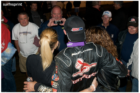 Perris popped the cork on a bottle of bubbly Saturday night. No special occasion, just a homecoming dance after Calistoga and Chico in the weeks previous. I talked with promoter Don Kazarian and he seemed pleased with the car count (32 sprints) and the almost full stands. I think Don’s decision this year to cut the schedule and reduce the amount of races synched perfectly with the tsunamic recession, which has especially devastated the kind folk of Riverside and the Inland Empire. “The days of racing every weekend are over” he informed me, “at least for the time being.”