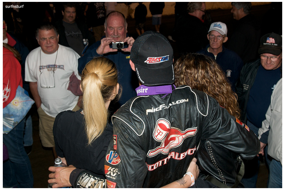 Perris is such a gift. For all its brawn, thunder and roar it still seems delicate to me, almost priceless or fragile, like diamonds and memories. I think of the passionate people in the stands and the pits enjoying the sights and the sounds and the smell. They know it’s ethereal, that it can all disappear like a car going over the fence at Manzanita. Moose Racing, NCJune, turn4Rob, harryfan, Bigfish, Buzzard, watkinsgrady, SBRacing, dirtface, Derp, wallscraper; we’re all chanting the same mantra. Be here now.
