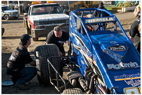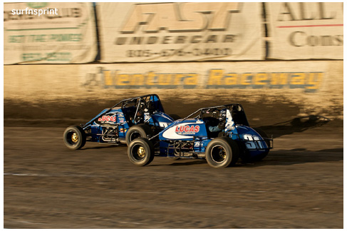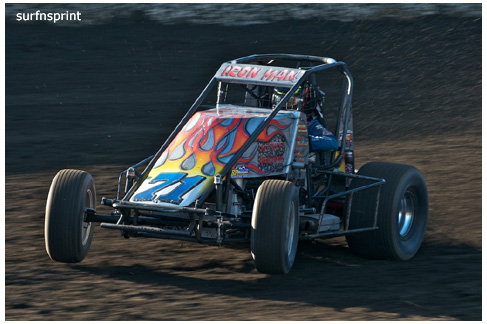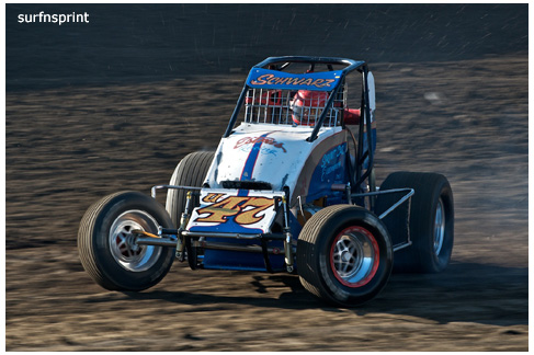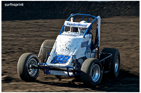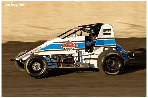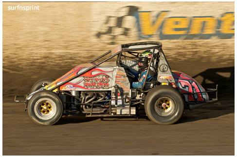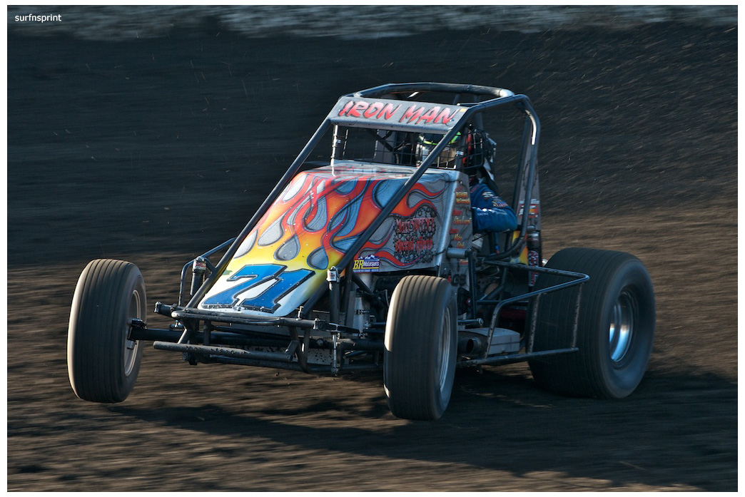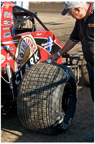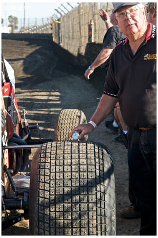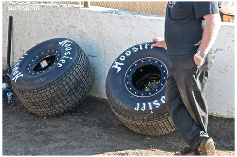 The tire tests happened at Ventura and the results were not unexpected. The Hoosier Medium shaved almost a half second off the average lap and delivered a smoother ride. Test driver Greg Taylor tells me “you can lean into it a bit more”. With time to change his car setup, he thinks the lap time would get even better. Markus Niemela reported “more bite in the straights, less skittish in the corners, a smoother ride”. Although there was overwhelming enthusiasm for the change in most drivers I spoke to, some drivers feel it will give more of an advantage to higher dollar engines. Mr. Naylor refused to confirm his intentions this week, citing some confusion about whether they actually had the exact tire the USAC 360 West Coast Sprints will be running. I am on this subject like salsa on chips. I will keep you posted.