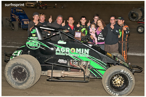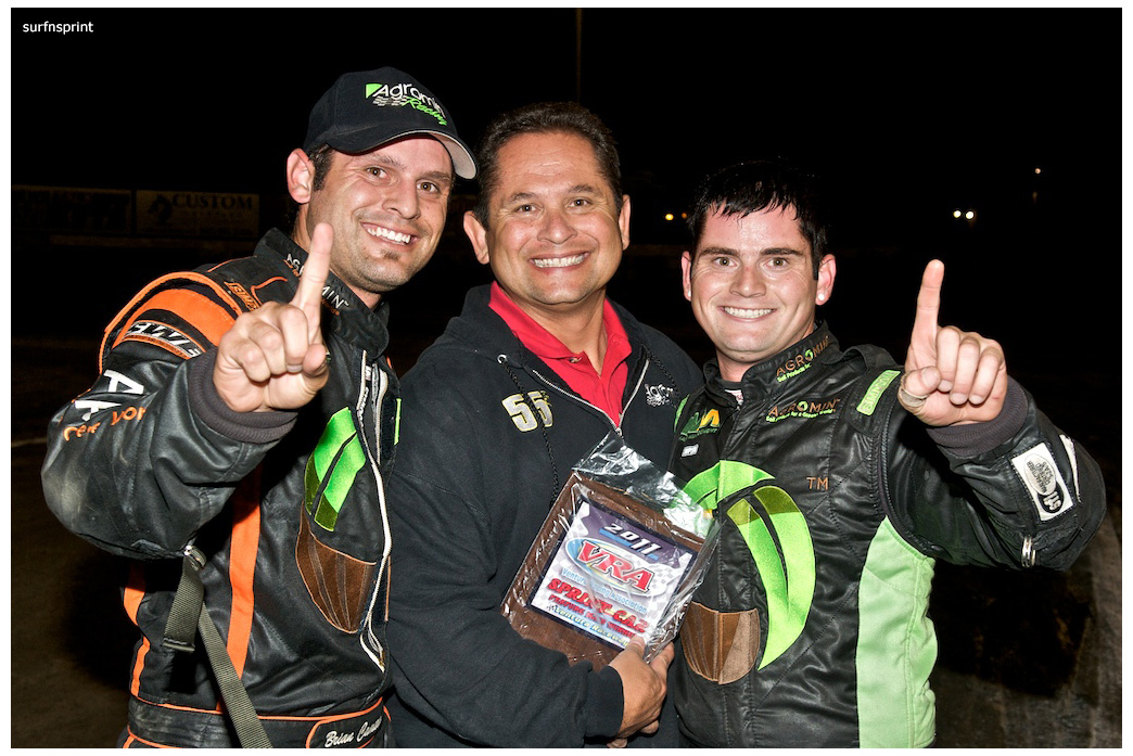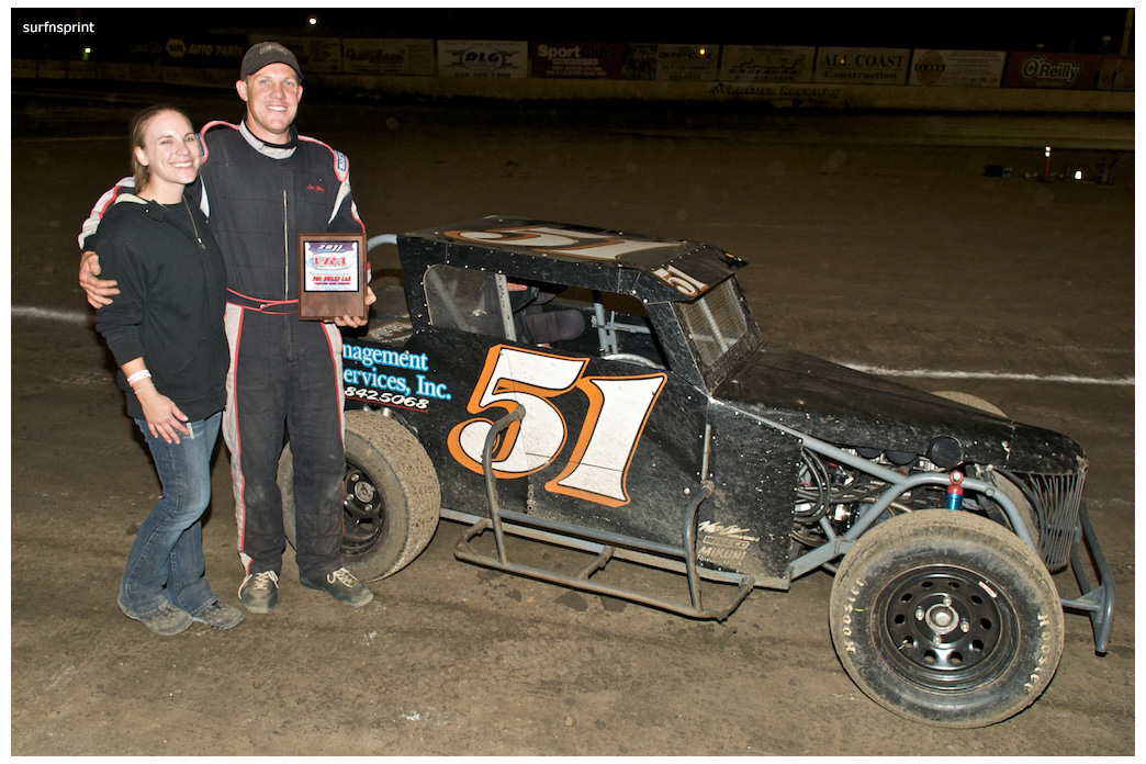 Brent Camarillo’s first VRA Sprint Car win came Saturday night after years where he demonstrated an exhilarating lack of patience. In a society of manners and political correctness, Brent Camarillo drives on the edge. He has earned and endured years of alternating scorn and praise as he took the mean streets of Ventura and learned how to get to the front. His victory Saturday night was a graduation class in patience and driving skills. But the most satisfying characteristic is not that he can win; it’s that he seeks and delivers thrills to the audience. Much like his compatriot Troy Rutherford, Brent Camarillo’s lust for life and hard racing takes away your breath and puts your heart in your throat every time he hits the track. He is the type of driver that can wow an audience.