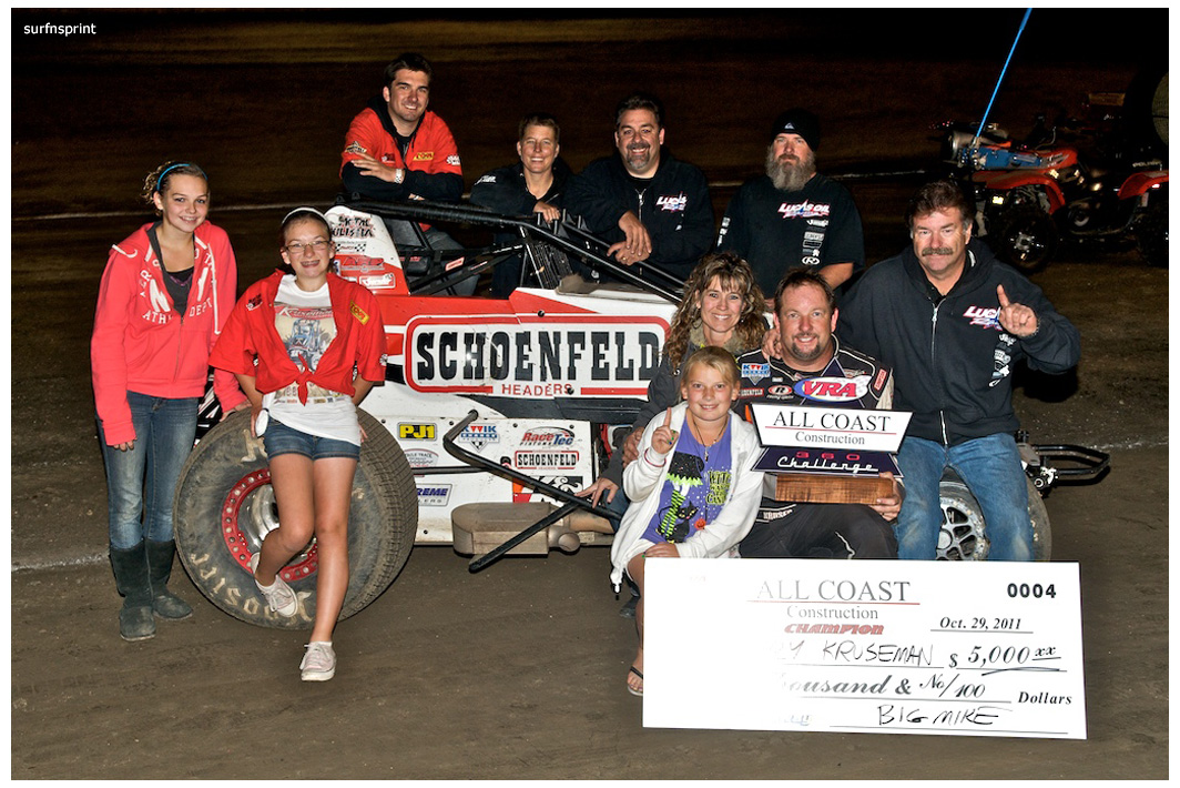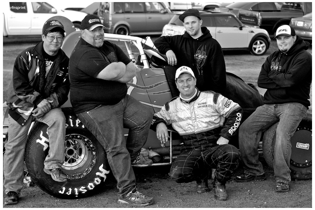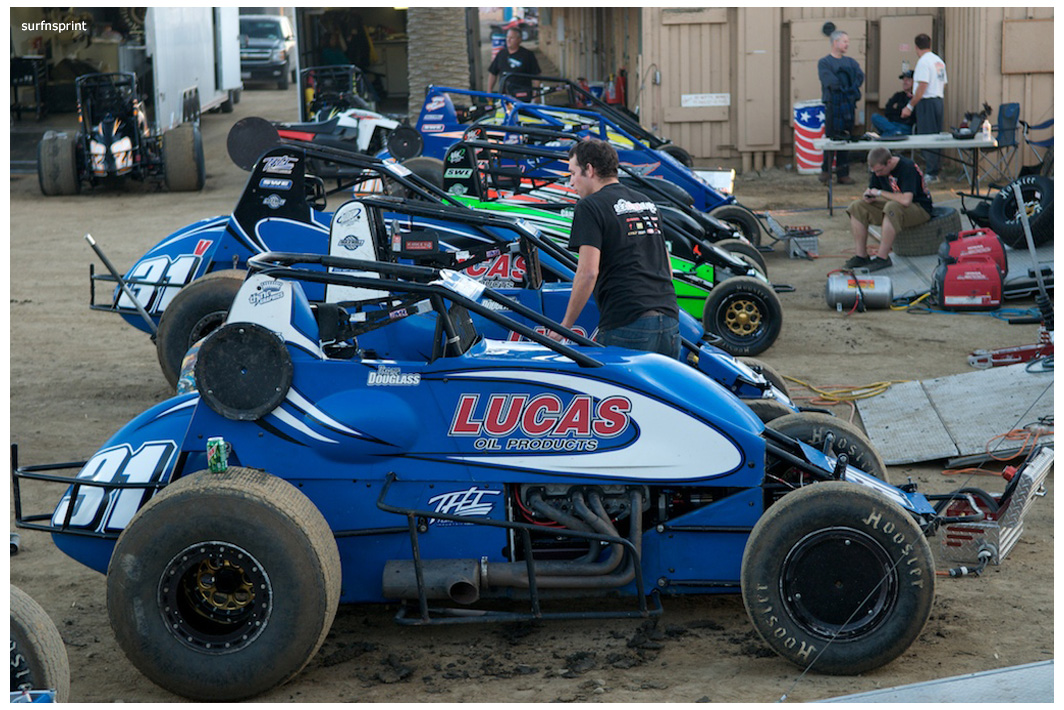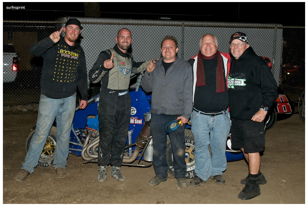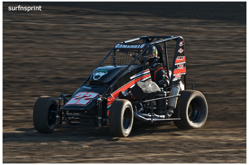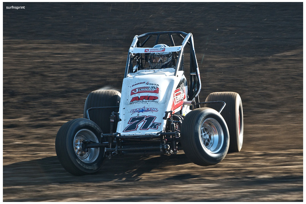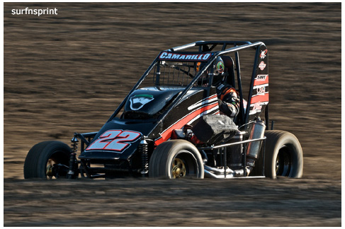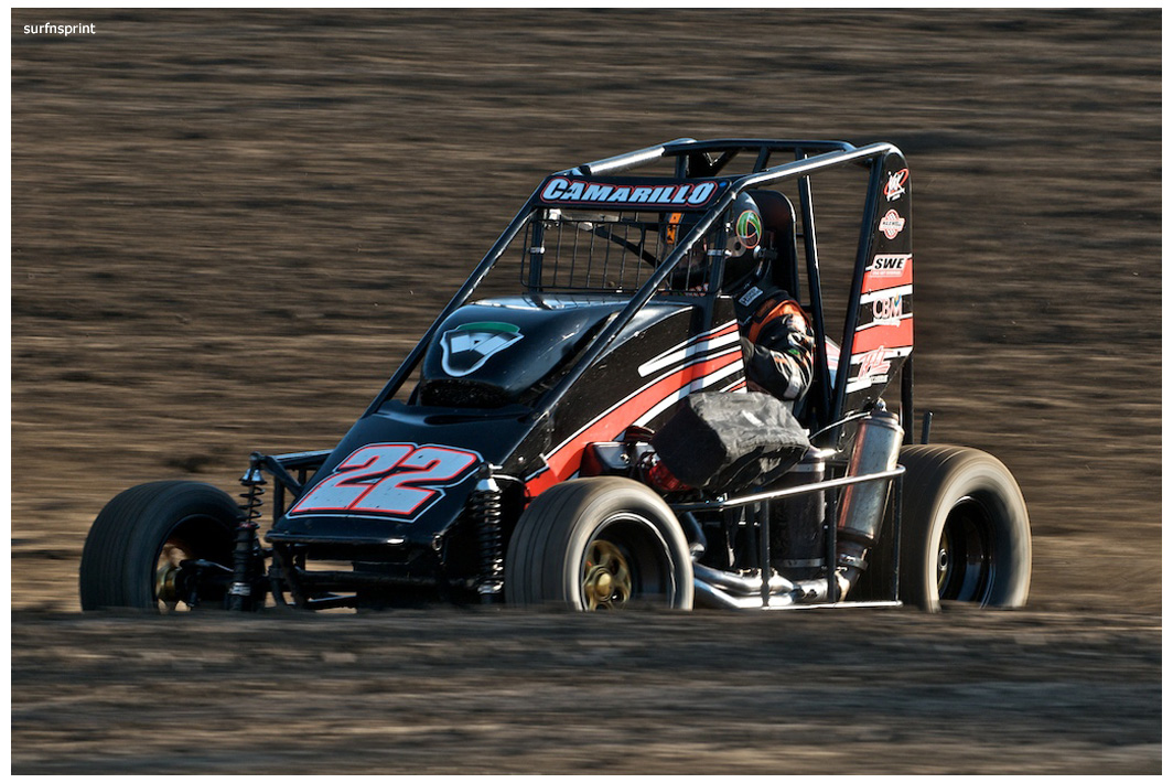 Danny Faria Jr. left the Central Valley about mid morning and found himself on the pole at 8:42 pm. “It’s not about the money” he told me “I’m here to support the race.” Exactly how I felt. He had the Kruser on his shoulder, Jace VanderWeerd and Greg Taylor (best lap time of the night @11.934 during heat 4) right behind them. Double threat Brent and Brian Camarillo right behind them. West Coast 360 Champion Richard VanderWeerd was next and Jonathan Henry flanking him. Troy Rutherford was stuck all the way somewhere in the summer, but he knew his way. They fired that thing and it was that comforting roar and calming speed. Track so fast passing was going to be difficult. Cory out front but Faria was right there applying pressure. Cory high, Danny low and here comes Taylor. He is the All Coast points leader and he’s looking at a10K payday if he wins this race. Cory gets out a bit as Faria deals with Taylor. Faria over steers in turn four, balks for a second and both Taylor and Camarillo get by. Taylor is slowly reeling in Kruseman and it’s two of Ventura’s greatest doing what they do best lap after blistering lap. Brian Camarillo is hot on their heels and there’s no quit in Faria. Brent Camarillo spins in turn one and we are yellow.