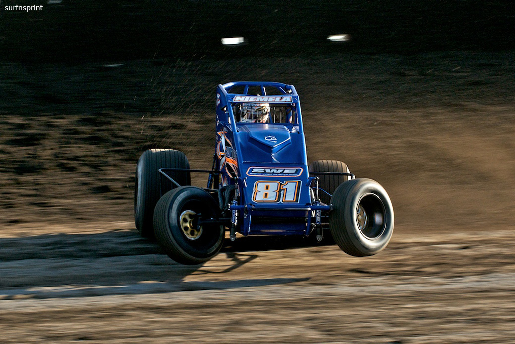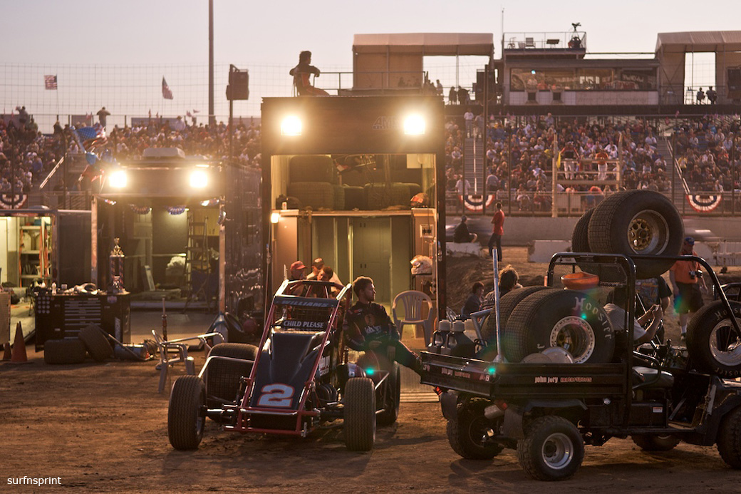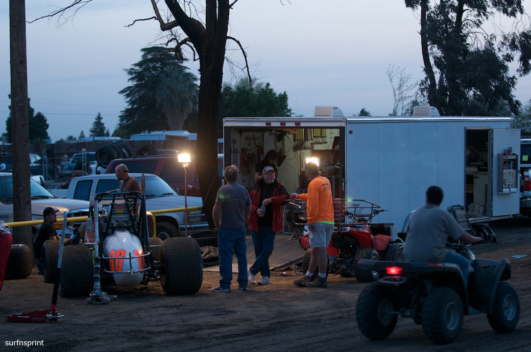 I’ve often said that if the race is good enough I’ll pay again on my way out. Perhaps it’s a flip comment but maybe revealing in a vague way. I should wander down into the pits after the race and hand that money to some hardscrabble driver, there’s a few around. Fuel, new right rear, replace two shocks and new tear offs. Wouldn’t be so bad if he hadn’t lost his pipefitting job two years ago. Gets by with handyman jobs here and there and that puts food on the table. It’s really his father-in-law that owns the car and pays the race bills. Pops used to race himself and recognizes maybe the one thing his son-in-law is good at. Gets the family together on a Saturday night once or twice a month. He doesn’t blame the kids for losing their house, anybody can see the banks took a shotgun to a couple dozen million people and basically cleaned out their bank accounts. Then when the money ran out they just pulled the trigger. I hope those bankers are sleeping well in hell. Sometimes it’s only the sound of a sprint car that can clear your mind. The traveling is tough and rare, an open wheel trailer and a scratchy neon motel. It’s just a two-night show on the Central Coast but it’s three hundred bucks to Pop for our room, gas and some Denny’s breakfast. Then you pull up to the pit window and it’s a fee for this and a rental for that. You pay for Jill but they give you jack. It’s cool, I beat that point’s leader last year in Bakersfield and I’m good to make that $1,000 win. Then I’m going to give all that money back to Pop and make things right. The big fan makes the trip too, he can afford the Holiday Inn Express because he’s got no racing bills, but that Friday night show made him leave work Friday morning and wasn’t that a funny face the boss gave me when I told him. Screw him, but maybe I’ll quit spending so much time checking race results when nobody’s looking. Ha! But for me, the biggest cost of racing is time away from family. With two young daughters, ten and fourteen years old, I’m starting to wonder what the hell happened? They’re standing in front of me grinning in those black shiny wetsuits before I give them a surf lesson. What happened to the two babies I would lift up over the waves as they shrieked in delight? I am in life changing race to catch their childhood and I am losing badly. I used to be fast but this track is starting to whip my ass. I’m buying life insurance but getting less life out of the deal. Them banks get you coming and going. I’ll see you at Ventura this weekend. You grab those barely used tires from behind the race shack. I’ll cook some food up and we’ll cash a few checks. But my girls will be at a water polo tournament in Riverside and if I seem a little distant or distracted...