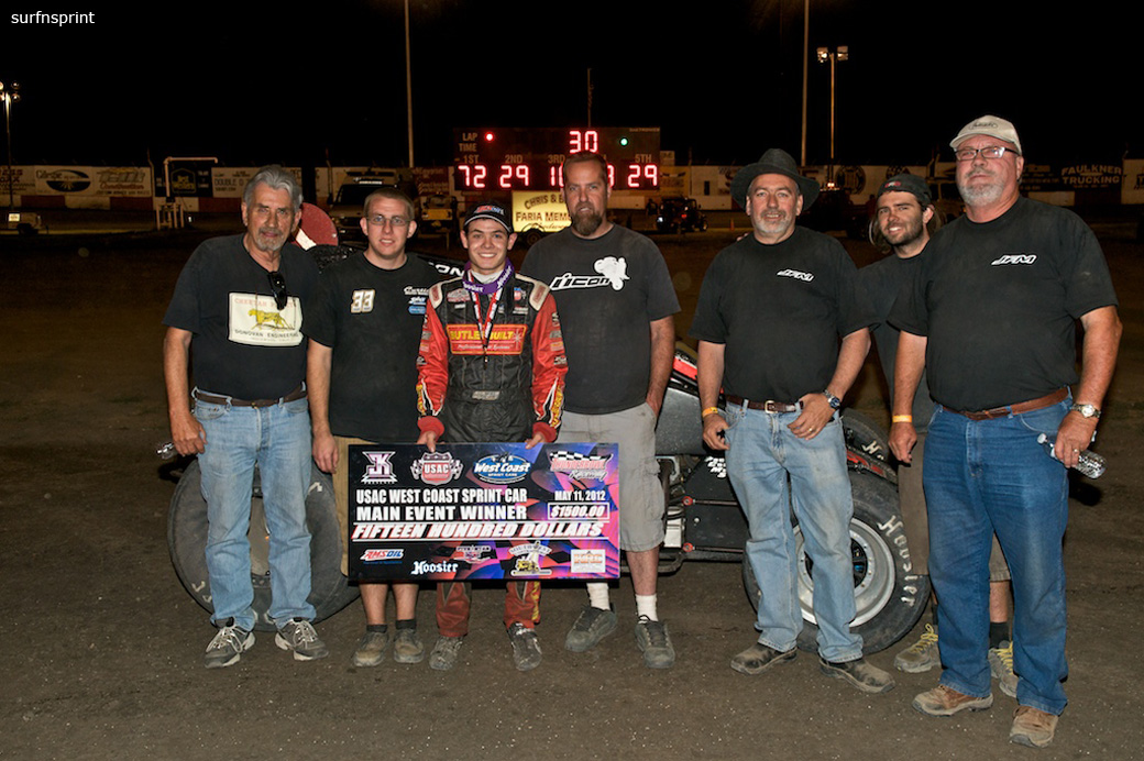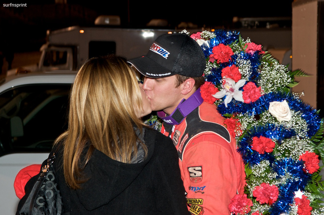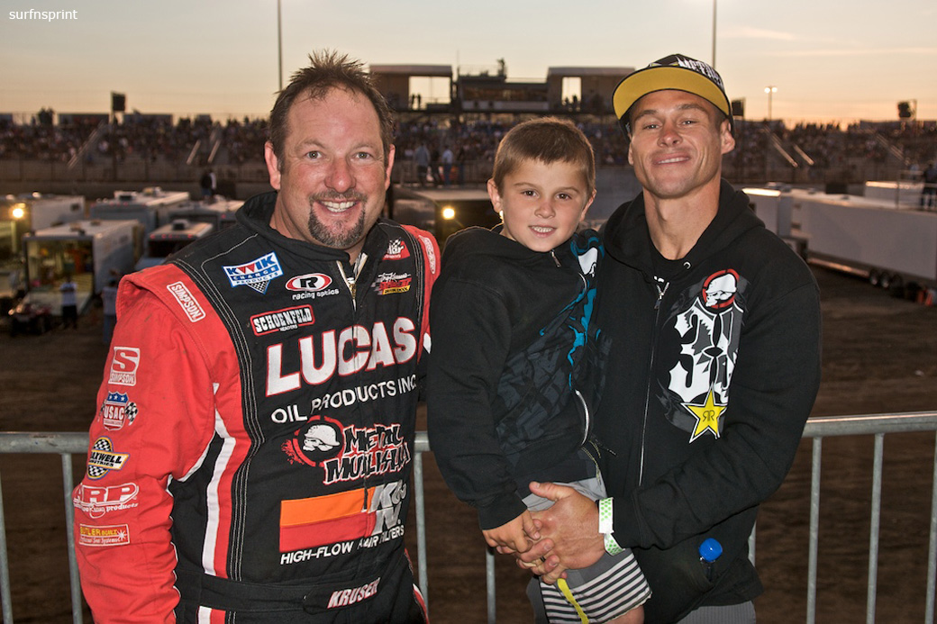 The transformation can occur anywhere, but typically I’m on the road in some California mud town stepping into a sprint car weekend. It hit me hard in Bakersfield on my way to Tulare for the Chris and Brian Faria Memorial race this year. I was standing in front of Henley’s Camera on H Street but it may as well have been platform 9 ¾ at Kings Cross Station on my way to Hogwarts. I abandoned the normal world of LA Carjack Your Soul and stepped into the Valley of the Gods. You can smell the dirt up here and breathe the sky. These people have their boots in the mud but their heads are in the heavens. They race different here; everything is noble and bigger than life. If that car takes out a fence, metal-smiths instantly appear, screw that plywood patching bullshit. This is the Kingdom of Kaeding, driven by an army of princes and thieves with royal names like VanderWeerd, Tarlton, Bernal and Abreu. But on this trip, they pulled a real wizard out of their hat, a diminutive and unassuming man/child who looked like he could barely survive shower water. He couldn’t have weighed a hundred pounds soaking wet. But he was superhuman in his strength and endurance and they called him Sir Kyle. God bless track promoter Don Sharp and the Faria family for the Faria Memorial. Honoring fallen brothers Brian and Chris, it’s hardcore, magical and heart warming every time I’ve gone. This year they ran two nights, both non-wing 360’s and winged 410’s each night. That kid came out Friday night and blew everybody out of the Thunderbowl both wing and non. He came back Saturday night, crashed his non-wing car in the heat and then worked through both the semi and came from the back in the main to win again. Now he turned his attention to the final winged event, with three of the four mains already notched on his belt and a jet stream of fallen demigods and mortals in his wake. Normally I keep detailed records of position, passes and characteristics of a main event. But this prince’s driving quickly reduced my notebook to a blathering list of adjectives and descriptions. Page after page of notes referred to: Malicious aggravated assault! Wizard! Punishing the track for fun! Free from physics! The other drivers have a better chance of getting hit by a meteorite than passing him! At least they can brag to their friends that they ran once with Larson! It’s Larson and then everybody else. Mind control over everyone and everything. You could almost see his delight at hitting some traffic and passing everyone! It’s getting close to midnight, the hottest chick in the world walks into the bar and everybody starts driving into walls! We get out of a yellow and now this speed gypsy really starts to pick everyone’s pocket. In back marker traffic almost instantly, he reminds me of a duckling splashing and playing in the water! And finally, hauling the email at supersonic speed, really pushing metal and mud beyond human and physical limits, coming to the end now, seemingly bored with just a mere two night sweep, his car engine explodes down the back in flames, smoke and rage. He crawls out and pounds the fire truck hood in frustration. I am stunned senseless by sensory overload. His bro Rico Abreu flashes by for the win and the crowd erupts in delirious appreciation. Gophers were partying underground because the relentless beating had finally stopped. We need a savvy promotion. There’s only one thing you can do with this kid. Suit him up, put him in his car, put the car in the hauler, close the doors, chain and padlock the whole mess. Then stand back and unleash the main event. Houdini.