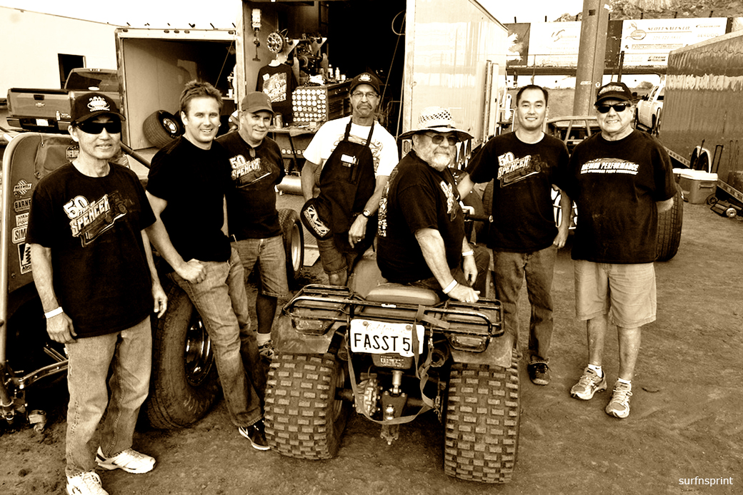 Yeah I've got a life and it's packed for the next few months; All Coast Challenge, new houses to build, wedding anniversary, winter surf, the Holidays... But the only thing I've really got on my schedule is to watch Mike Spencer and that wicked #50 team assault on the Oval Nationals. Forget the fact that they are going to make USAC history this year with five consecutive titles in one division, never before accomplished by anyone ever in the USAC universe. Screw that. It's my opinion that their hunger for the Oval Nationals is overwhelming and burning a hole in their hearts. Mike Spencer has evolved into the most thrilling driver on the track. I used to see him as cautious and conservative, now I can't take my eyes off of his ruthless focus and execution. Fascinating how he stalks a race, sizing up the quarry and judging the conditions. Then the vicious bursts of speed as he runs down the leaders. The passing becomes an art form, metal and mind melded to counter every physical law of nature controlling particle, mass and motion. Forget the sloppy pushing and shoving, he will whisper sweet nothings in your ear…you turn to smile…he is already gone. I never thought the Perris fans gave Mike enough credit. I asked him about it, he's says he's never given it a thought. Ron, Bruce, Mike and the whole damn crew, it's like watching Mark Twain, the Beatles and Sandy Koufax rolled up into some kind of bluegrass supergoup. They're channeling Bromme and weaving something money can't buy. It doesn't get any better than this.