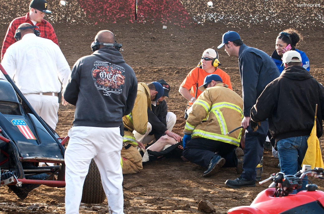 As soon as his front wheels left the ground and he lost steering, Seth Wilson knew he was done. As he braced for the first hit, the irony flitted across his consciousness, brand new frame and first time out. This was his track; Victorville, three-time track champion but his new friend fate could care less. As the front wheels lifted to the sky, the car rotated on the right rear, which wrenched the body into a corkscrew and hammer jacked that front right tire into the dirt, stretching front end metal, cable and rubber into something unrecognizable. As the car catapulted end over, the rear end came down hard and bounced the whole mess back into the air. He was tucked and braced but the violence was just beginning. The front end now hit like a pile driver into the hard clay. Another rotation coming down hard again on the front end. A fourth and final sickening flip with the motor still on the gas and this time coming down on the front end with a torque that was like a sledgehammer to his knee. His kneecap came into the steering shaft so hard it was just cleaved by the shape of the shaft, bone separated and pressure formed to wrap around that two inch column. Lying in that stinking mess, he was conscious and aware of hot blue power steering fluid dripping onto his body. He was trying to remove a bent steering wheel and crawl out, but body parts weren't working. Emergency personnel pulled him from the wreckage, took a look and mainlined morphine right on the track.