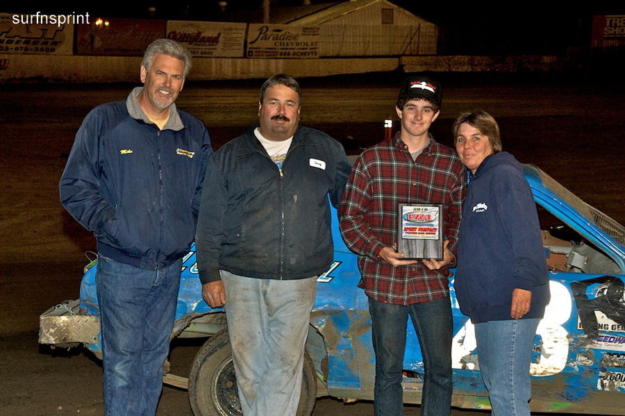 Nowboly gobbley good, forbidily and forgetilly allboly everly gonerly. Or as the htpqgasman proclaimed, “probably adjusting the whatchamacall it that opens the whodinger thingy”! That whodinger thingy got out Saturday night and shredded everything that came before and cracked the whole future hiding behind the now. Car count was so low we called for medics. Except those sprints. Twenty-nine forever-lost apostles show up rain or shine, sun or moon. The Kids took a clue; rookie Piston Logan Rutherford kicked the whole shebang into gear, announcing I Am Here and just knocking everybody out. Figueroa took four but gave more. Dwarf monsters Benson and Vanpraag destroyed. Fitzgibbon showed everybody how bad you have to want it. Redman owns the joint but still has to pay rent. Then the sprints came out and just slaughtered everyone’s expectations. On maybe the raciest track in years, the toughest SOB in Ventura pound for pound endured thirty merciless laps of what he lives for….