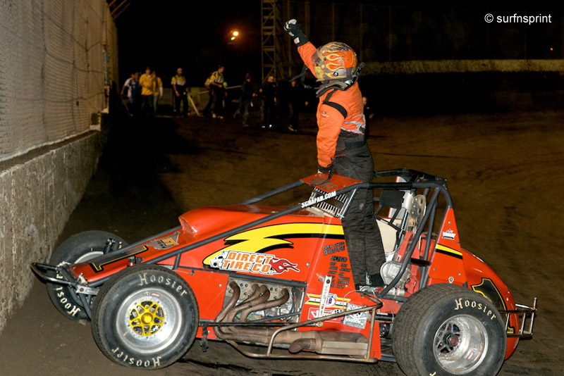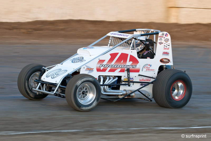 Powerful stuff. You have one the great drivers in Ventura history in the middle of a steamy and sizzling run; a growing cacophony of cymbals, guitars and speed pounding like only comes as often as Haley's comet. That comet is burnished by a sky overflowing with stars, new stars being born, exploding novas, black stars and the lingering glow of stars that burned out light years ago. This track is stuffed with sprint cars every Saturday night because this is where the action is. If you have to measure the light level, let's be honest. Wrenches that have been spinning for decades. Car owners and that's all they own. The fans are your family, that's your mother, your son, your wife in the stands. Hug your kids. They're gone faster than a heat race. Enjoy the track, your friends, the gentle air scented with alky igniting. It's all moving in gentle arc, like our world with a horizon that never shifts, all tilting, all imperceptibly being pulled into a black hole of speed….