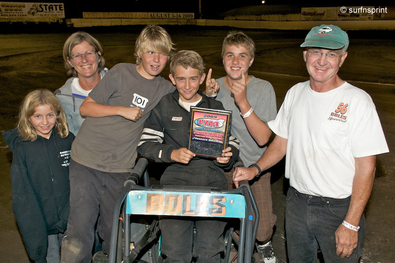Let's spin through the divisions. Kyle Edwards is starting to make a name for himself. He won the USAC Junior Focus Midgets event at Hanford. He has now repeated for the VRA event in Ventura. Casey Martinez finished second and Tanner Kershaw took third. Edwards is second in VRA points right behind Ethan Quinn. VRA Mini Dwarfs Pistons had Kyle Peterson take his first main event this season. After eleven races and a million second place finishes, kudos on your grit and determination. Joe Snyder and Cole Wakim in second and third. Oliver Blades aced the Superchargers, with Cameron McCauley in second and Tommy Velasquez in third. Ricky Lewis, who took a mind-blowing flip in Hanford, leads the points just ahead of Oliver. Four races to go. Luke Boles won the VRA Junior Midgets, followed by Riley Helland and Brennan Rogers. My buddy Austin Figueroa is still leading the points. At this point, Jim Naylor shut down the show for thirty minutes and cut in one of the best tracks we've seen in awhile. The VRA Senior Dwarfs came out and went the distance without a yellow. The incredibly consistent Kevin Alverson led all twenty laps. Steady Ed Niedzwiecki finished second with Lee Majors in third. Not bad for Lee's first outing with the Senior Pros. Look for Alverson in a sprint car next year! Next the Senior Sprints came out for another non-stop green white checker. When the track is this good, it's hard to pass. The first seven cars finished in the exact order they started. That would be, uh, Kershaw, Culver, Denome, Wiley Miller, Douglas, Warren and Richards. The point's lead shifts from Douglas back to Kershaw. Three to go. IMCA Modifieds is all about Randy McGraw. The talented driver came out again this week and destroyed the competition. Jack Parker escaped the major cluster on the front straightaway and drove to second with Doug Thorton in third. That mess took out Austin Rodarte and diminished his point lead to less than one race. Jack is hungry in second. There is only one race left. See you September 26th.