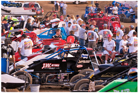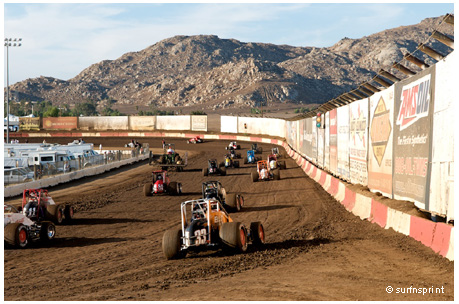 Every time I drive to Perris, I feel like I’m on journey of discovery. The Inland Empire is a foreign land to me. I take the 210 east thru Pasadena and skirt the base of the San Gabriel Mountains. I’m not sure where the storied Empire begins, but once I clear Glendora, I get the feeling I’m not in Kansas anymore. I remember my grandfather bringing me out here when I was a child and all I could see was orange groves forever. It didn’t really last forever. Now it’s all different, but strangely familiar. Urban sprawl choked up against purple mountains. I’m passing towns I don’t know; yet the names are ringing bells. Pomona, Ontario, Fontana. I head south on the 15, there’s a sign to Norco where I know Tony Jones lives. Another sign points to Temecula, where Mike Spencer comes from. East on the 60 and there’s Riverside dead ahead, home to David Cardey. Passing Rubidoux, I turn south again on the 215 and make my way down past the historic airfields. I see DHL painted on the sides of large terminals and I guess that’s history now too. I pull into Perris and it’s a dusty moonscape. New corporate fast foods and convenience shops line the Ramona Parkway like hair sprouting on a bald man. I have been transversing the fault lines of California for hours. And with aftershocks still emanating from southern Arizona, I have arrived at what is now arguably the epicenter of sprint car racing in the Western United States…..