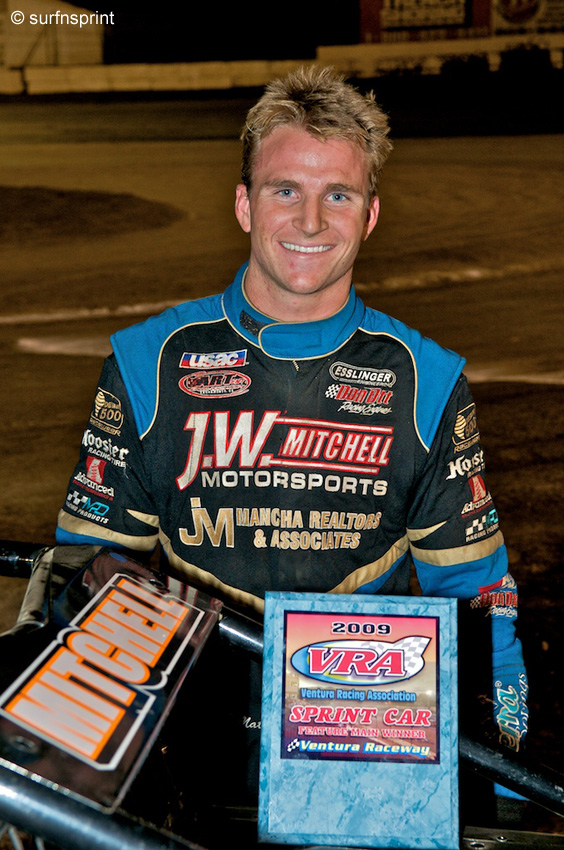 Out of twenty nine, twenty sprint cars lined lined up for the main event. Dakota Kershaw was the alternate but he did not get to the green flag. Young tigers Brandon Thomson, Brian Camarillo, Tyler Edwards, John Nock and Matt Mitchell in the first three rows anchored by Troy Rutherford in the sixth spot. Phillip flips the green and we are smoking. Track is in great shape, tight and packed, looks like it wants to take rubber but time will tell. A few vicious ruts here and there. Clear and cool. Everybody is on the bottom, Thomson wobbles and drops the lead. Brian Camarillo out front and the gang fills in. It’s Camarillo flying, Thomson, Edwards, Rutherford and Derek Buckley. Camarillo has a big lead as Rutherford clears the other frontrunners, followed by Thomson on the bottom and here comes Mitchell. Rutherford and Mitchell start running the top like two open wheel locomotives. There is a tiny cushion the size of your forearm separating the track from the wall. First yellow and the line up has Edwards in fifth, Nock sixth and hello Blake Miller! Green again and Camarillo gets away cleanly. Mitchell bounces through a turn two rut but still advances past Thomson for third. Rutherford is dead ahead. Mitchell slides Rutherford turn two, Rutherford goes under him and clears on the backstretch. Miller has cleared Edwards for fifth and is getting up head of steam. Suddenly, high in turn four Kevin Kierce (coming from the seventh row) mixes with Edwards, flips in slow motion and we are yellow. It’s the details that are killing me. The clarity of the air. The slow full moon hanging like a Japanese lantern over the track. The Amtrak train that’s whistling thinly behind the sound of titans. Naylor turns around on every yellow and is cooing at his new granddaughter in the pressroom above him. You can’t cram any more color into the picture. Camarillo goes high and Rutherford grinds the bottom. Kierce had refired but it was over and we are yellow as he dies on the backstretch. Replay the restart and Camarillo again smartly out front. Brian Camarillo really kicked this party off and picked the music. Huge acceleration in the straights and sweeping power turns. But Rutherford and Mitchell are coming like those holidays. I turn to Tim Truex in the tower next to me and I’m yelling about what a brilliant race Brian Camarillo is running. Five seconds later he hits the wall in turn one and he’s upside down. I know it’s my fault. I should learn to keep my mouth shut. I’m sorry, Brian. Restart with Troy Rutherford in the lead, Matt Mitchell wanting it bad and Brandon Thomson sticking to his bottom strategy. He needs more rubber. Troy is fast and hitting the bottom on one and two. Mitchell in second and he is betting on the wall. Miller clears Thomson for third and you have the unholy trinity up front, Rutherford, Mitchell and Miller. Troy drifts in turn two and Mitchell and Miller take first and second. Mitchell is doing high speed pounding on the walls and Miller and Rutherford and battling for second. Unbelievable speed by the top three coming through turns three and four, each car a locomotive and the whole thing looking like a hell bound train. From the top of the tower to the bottom of the pits stands we are stunned by the majesty and intensity. Matt Mitchell is grinding the concrete in every corner. Blake Miller is gaining. Troy Rutherford is flat out in the moment. Blake is on top of Mitchell and sees an opportunity coming into turn one. He dives to the bottom and everyone in the joint knows he going to the front. STOP THE PRESSES. He catches a mean little rut at the bottom, turns a micrometer the wrong way and PARKS IT. Twenty three laps completed and seven to go. Blake Miller is one of the great drivers on the West Coast but tonight he goes to the back. Green again and Matt Mitchell is again on the gas. Rutherford to the bottom but it’s not getting done. Huge racing further back between Nock and Woodward but who has time? Ronnie Case is coming up fast from the seventh row. Relentless scary speed up front for spellbound fans. White flag out and nobody gives up nothing as Mitchell is full throttle all the way to the checkers. Rutherford relentless in second. Ronnie Case cool as a cucumber in third, top three in the last two races, hard charger almost every race. Even the losers walked out of that place satisfied.