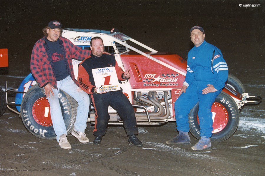 Steve started driving and an upcoming upstart named Jimmy Crawford pulled in Jim Gresham as crew chief. They campaigned hard and took the VRA Sprint Car Championship in 2002 with Jimmy "the Neutron" Crawford at the wheel. Jim took a brief detour into light Indy cars, becoming a team fabricator. He did a little traveling but found it weak after the mud slinging open wheel racing. He had developed the unshakeable opinion that sprint cars in the dirt were the highest evolution of speed and skill. He came back to Ventura and hooked up again with Crawford. They started racing from Perris to Hanford and all points in between. They started running a 410 at Perris Speedway and set their sights on the SCRA Midwest Tour, with Jim and Jimmy planning to hit it light in 2003.