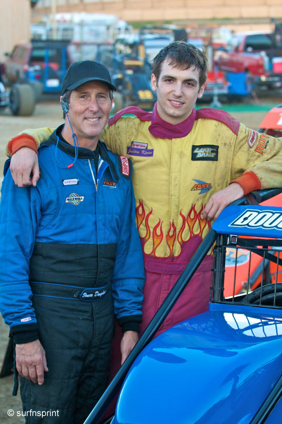 I don’t know where Ricky Lewis is going but I sure dig his action. That kid drives hard and plays harder. Every night he gets out and boogies that crowd, seizing the moment with such enthusiasm you forget who you are and suddenly you are a twelve years old again. His parents love him without reservation and that’s how he drives. Single-handedly made me smile on many long tired Saturday nights. I don’t know who Kyle Edwards is and he doesn’t know who I am. We’re good. He killed in Junior Focus Midgets. I got a special feeling for Austin Figueroa. The kid is so real and down to earth. Drives that Junior Midget like Dave Darland is whispering in his ear. Maybe it’s just his dad.